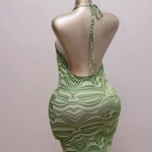 Bring the heat with this vibrant Swirl Print Halter Mini Dress, a bold and playful piece that flatters every curve. Featuring an eye-catching wavy lime green and white pattern, this dress channels retro vibes with a modern twist. The halter neckline enhances the shoulders and neckline, while the ruched sides add a snatched, figure-hugging silhouette. Made from stretchy, lightweight fabric, it’s perfect for summer parties, vacations, or a night out with the girls. Pair with strappy heels or sneakers for a confident, standout look that’s anything but basic.